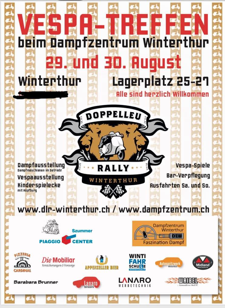Wir vom Vespa Club Doppelleu Rally Winterthur laden euch herzlich dazu ein, vom 29.8. – 30.8.2020 zwei Tage Vespakult mit uns zu feiern.