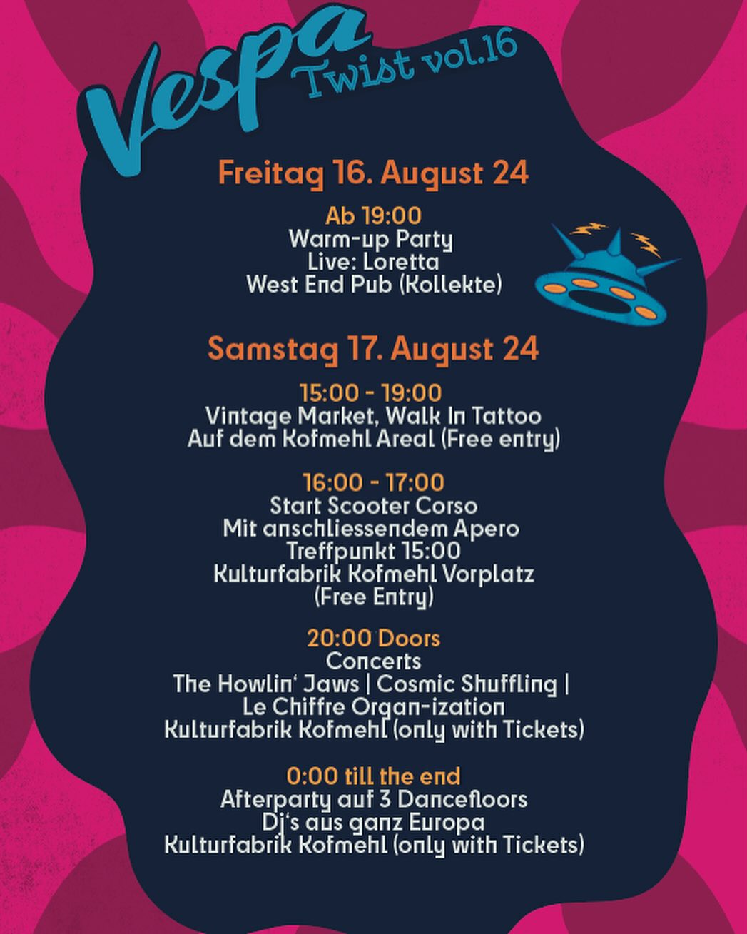 Per la quindicesima volta, la Bahnhofstrasse Buchs (chiusa e priva di auto) diventerà uno stato di emergenza e un centro di attrazione questa volta anche per le auto d’epoca, i piloti di Vespa e Lambretta, gli amici scooteristi, i passeggeri e gli spettatori grandi e piccoli. Tutto questo deve essere celebrato e tutto questo all’aria aperta, senza costi di ingresso, senza registrazione o tasse!