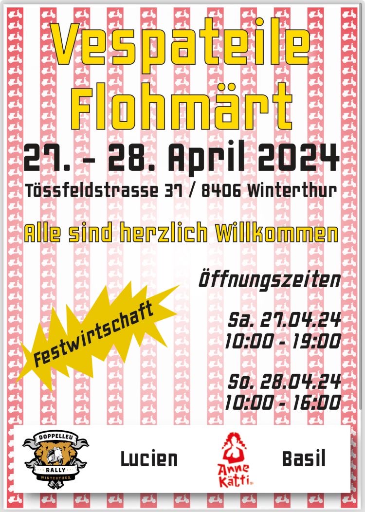 Der Vespa Club Doppelleu Rally Winterthur veranstaltet am 27/28.04.2024 einen grossen Teile Markt in Winterthur mit Festwirtschaft.